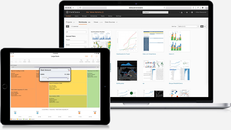 利用数据推动决策。 将多个视图整合在交互式仪表板中。 突出显示和筛选数据,展现关系。 将具体见解串连成一个叙事线索,讲述您数据背后的原因所在。 使用基于 Web 的 Tableau Server 或 Tableau Online 共享内容。 创建以数据为导向的文化。